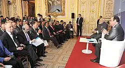In August 2018, The Indian Express reported that Reliance Entertainment funded a film produced by former president of France François Hollande's partner Julie Gayet when Rafale negotiations were ongoing.[111] When asked to comment on this, Hollande told Mediapart that the Indian government had proposed the name of Reliance and that they had no choice in the matter. He added that due to this, there was no reason for Reliance to do him any favours. He said that Kev Adams negotiated the funding for the film and Gayet said that Adam's talent agency My Family had approached and secured funding from Reliance and she was merely presented with Reliance as a partner after the fact.[112] The French Ministry of Europe and Foreign Affairs contradicted Hollande by releasing a statement saying that the French companies had "full freedom" to choose Indian partners for executing their offset obligations and that French companies had utilized the freedom to sign agreements with multiple Indian companies. Dassault also released a statement saying that the decision to partner with Reliance was entirely its own and that it had already partnered with other multiple Indian firms too.[113][114][115] Indian Ministry of Defence too released a statement saying that neither the Indian nor the French government had any involvement in Dassault's decision to partner with Reliance.[116] Hollande later reiterated that the French government did not choose Reliance. His spokesperson said that Hollande was referring to the new deal for 36 aircraft when he said that the Indian government made the proposal. When asked by Agence France-Presse if the Indian government had pressured Dassault to partner with Reliance, he said that he was unaware and redirected the question to Dassault.[117][118] Reliance Entertainment said that it had no relationship with Julie Gayet or her company Rogue International. It added that the financing partner was Visvires Capital and the investment was limited to 15% of the film's budget. The company's statement said that the investment was made six months after Hollande stepped down.[119]