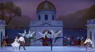 At the ballet school, Raffaella meets Ombroso, a charming young prince who is an incredible dancer. He practices a beautiful pas de deux with Raffaella and expresses his love for her. Then to her surprise he promises that he will make her a princess, and offers her a jeweled crown. Raffaella is tempted but when she chooses not to accept the crown, Ombroso becomes angry with her. He lashes out at Raffaella for rejecting his gift, and Raffaella realizes that he is a false prince.
