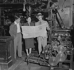 ![]() Reading a fresh print of The Rafu Shimpo in 1942 | |
