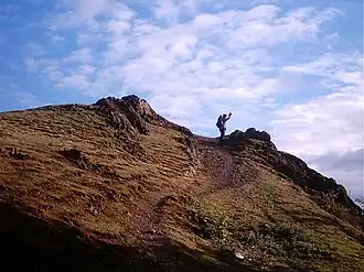 The northern flank of the hill lies on the southern side of the Hollybush pass, from where its summit is a brisk 15–20 minutes steep walk from the nearby Hollybush car park.
