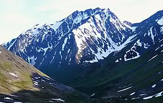 - ^ a b c d "Raggedtop Mountain, Alaska". Peakbagger.com. Retrieved 2023-12-29.