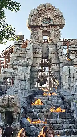 Raging Spirits (レイジングスピリッツ) is a roller coaster attraction located in Tokyo DisneySea.[1][2][3][4][5] The attraction began operation on July 21, 2005.[6][7][8] Created by Walt Disney Imagineering, manufactured by Intamin and built by Sansei Technologies, the attraction takes guests on a thrilling, high-speed ride through the ruins of an ancient ceremonial site and its depictions of Incan buildings in the mountainous region of Peru.[9] The attraction is located in Tokyo DisneySea's Lost River Delta section.[10][11][12][13][14]