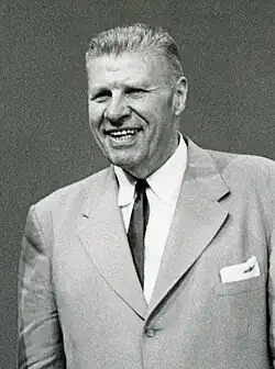 Eric Ragnar Benson (born July 29, 1899 in Virestad, Älmhult, Sweden, died March 10, 1979, in Chicago) was a Swedish-American building contractor in Chicago whose firm was one of the ten largest in the United States and employed thousands. Benson was the son of Karl Edvard Bengtsson and Matilda Bengtsdotter, and one of 10 children.[1] He arrived without means in the United States at age 11, became a stonemason and bricklayer, created Ragnar Benson Inc. in 1922 and by 1969 was given the Horatio Alger Award. His firm worked for many major U. S. companies, built Chrysler assembly plant, Belvidere, 1964-65 and the famous towers at Three Mile Island. Ragnar Benson Inc. had built Chicago structures including the CNA Building and Harbor Point Towers and had performed maintenance work on city buildings including Tribune Tower and the Wrigley Building.[2] Benson was widely known for philanthropic generosity which at times was considered eccentric.