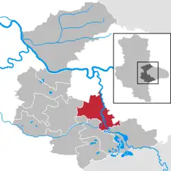 Raguhn-Jeßnitz (German pronunciation: [ʁaˈɡuːn ˈjɛsnɪts]) is a town in the district of Anhalt-Bitterfeld, in Saxony-Anhalt, Germany. It was formed on 1 January 2010 by the merger of the former municipalities Altjeßnitz, Jeßnitz, Marke, Raguhn, Retzau, Schierau, Thurland and Tornau vor der Heide.[3] These 8 former municipalities are now Ortschaften or municipal divisions of the town Raguhn-Jeßnitz.[4]
