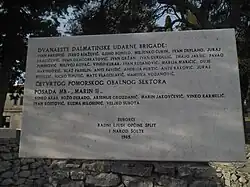 Although they failed to achieve the goal of completely overrunning German positions, the 8th Corps Headquarters nevertheless commended the soldiers and commanders of the 1st and 12th Brigade, with the 3rd Battalion of the 1st standing out.[34] The Partisans suffered 40 killed and 129 wounded during the raid itself.[41][28] An additional 57 wounded, crewmen and personnel died in the sinking of Marin II bringing it to a total of 97 killed and 82 wounded.[c][42] Among those killed in the sinking were two wounded German prisoners and six civilians from Šolta.[28] The commander of the 3rd Battalion of the 12th Ivan Dragobratović was killed in action, while the commander of the 3rd Battalion of the 1st Ilija Antunović was wounded.[43] Exact figures on German casualties differ widely depending on the source. Kvesić (1979, p. 695) gives a figure of 150 killed and 52 taken as prisoners.[44] Novović (1985, p. 296) mentions around 130 killed, wounded or taken prisoner.[43] Pribilović (1988, p. 245) cites German sources as 34 killed, 82 wounded and 84 listed as missing.[41]