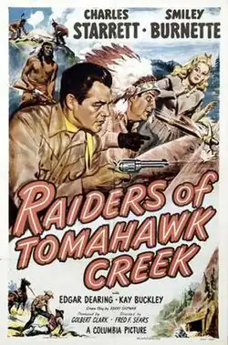 Raiders of Tomahawk Creek is a 1950 American Western film directed by Fred F. Sears and written by Barry Shipman. The film stars Charles Starrett, Smiley Burnette, Edgar Dearing, Kay Buckley, Billy Kimbley and Paul Marion. The film was released on October 1, 1950, by Columbia Pictures.[1][2][3] This was the fiftieth of 65 films in the Durango Kid series.[4]