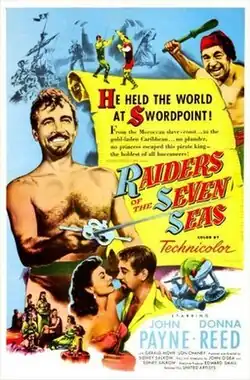Raiders of the Seven Seas is a 1953 American swashbuckler film directed by Sidney Salkow and starring John Payne and Donna Reed.[1] The supporting cast features Gerald Mohr, Lon Chaney Jr. and Anthony Caruso.