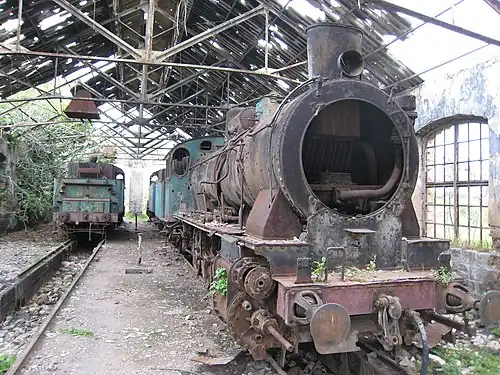 General Georges Catroux proclaimed the independence of Lebanon in 1941 but the French did not actually permit local rule until 1943. In 1946, the Lebanese government bought the Naqoura–Tripoli Railway for £5 000 000, yielding its management to DHP.[12] Syria nationalized its own railways in 1956 as CFS (Chemins de Fer Syriens). In 1960[10] or 1961,[12] the country's network was reorganized as the Lebanese Railway (Chemin de fer de l'État Libanais, CEL).[9] The Lebanese Civil War caused considerable damage to the rail network, however, and services gradually ceased. During the civil war, damage was caused by militias who blew up the tracks, Israeli army shelling and Syrian security forces digging up parts of the track to sell as scrap metal in Pakistan.[1] A 1974 article revealed that the 1.05-m DHP system was still working but still using steam power, uncompetitive and loss making.[10] The line between Beirut and Damascus was closed in 1976.[12] Commuter service between Dora and Byblos ceased in 1993 and the last regular rail operations in Lebanon—trains carrying cement from Chekka to Beirut—ended in 1997.[12] The Polish diesel locomotive class SP45 for this line continued to be run once a month at the Furn el Shebbak stockyards as late as 2002,[12] but service was not resumed.
