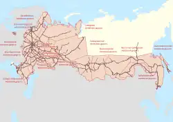 - "Rail map of former Soviet Union". Archived from the original on 4 January 2013. Shows electrification status and also many Industrial railways.