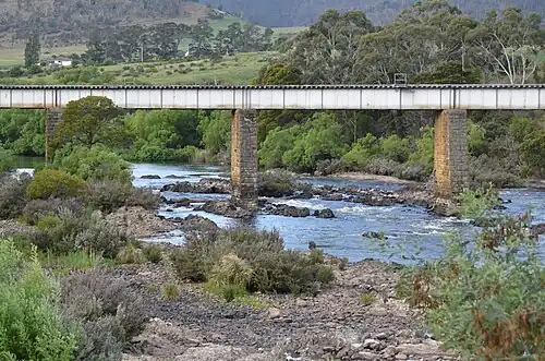 A 5 ft 3 in (1,600 mm) railway line was opened between Deloraine and Launceston on 10 February 1871 by the private Launceston & Western Railway, on the basis of debt guarantees from landowners who stood to benefit.[1] The line went bankrupt in 1872 and was taken over by the Government of Tasmania on 31 October 1873, which then attempted to recover the debt from the guarantors, leading to civil unrest.[1][2]