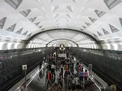 The efficiency of the Soviet Railways improved over time and by the 1980s had many performance indicators superior to the United States.[38] Railway built in the USSR were planned, and in contrast to the US, only a single railway line would be constructed between major cities. This avoided the situation in the US where two (or sometimes more) railway companies would construct lines that more or less paralleled each other resulting in wasteful duplication of effort.[39] Many of the rail lines in the USSR were inherited from the Russian Empire which had also avoided such duplication.