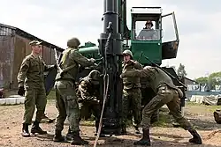 Railway Troops of the Russian Armed Forces (Russian: Железнодорожные войска ВС России, romanized: Zheleznodorozhnyye voyska VS Rossii)[1] are a railway troops service in the Logistical Support of the Russian Armed Forces.[2] They are involved in ensuring the defense of Russia. Railway Troops perform the tasks of rail services (preparation, construction, reconstruction and protection of railway infrastructure). It is the oldest such force in the world, established in 1851, as a unit in the engineering corps of the Imperial Russian Army.[3] The professional holiday of the Troops is celebrated on August 6.
