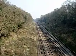 Sonning Cutting today, with a down train approaching the scene of the accident.