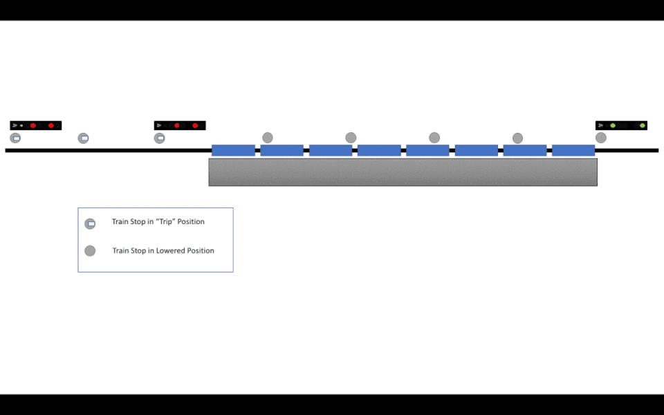 The system is most often used on approach to dead end junctions to stop trains from crashing into the buffers at the end, as has happened in places such as Moorgate. It is also used on high traffic lines to allow for higher capacity, such as the City Circle Railway in Sydney, where it was used on the western half from 1932 to allow 42 trains per hour to traverse the line in each direction, each station would have multiple train stops along the length of the platforms that would progressively lower to ensure an arriving train would not crash into the departing train, less than 100 meters ahead. This system was modified in the early 1990s, so that an arriving train would not be able to enter the platform until the previous train had departed, however the trips continue to be used to overcome the signal overlap normally required.