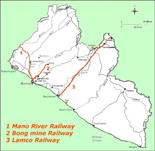 - ^ a b Railways in Liberia, http://sinfin.net/railways/world/liberia.html