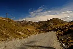 The terrain is rugged and the road has not been built to any particular engineering standard, but is there to give maintenance vehicles access to the power pylons.[1] The road is open to the public from 26 December until Easter Monday each year.[2] When using a GPS, it may give Rainbow Road as the most direct link from Christchurch to the city of Nelson, as it is the shortest link, and this sometimes catches out tourists unaware of the conditions in New Zealand's back-country.[3] Under good conditions, it takes a 4WD vehicle about three hours to drive the 112 km.[2] Island Saddle is the highest point on the route at 1,347 metres (4,419 ft), and this is New Zealand's highest public road.[2] Part of the road crosses private land at the Rainbow Station, and the leaseholder charges an access fee of NZ$40 per 4WD, NZ$20 per motorbike, and NZ$5 per mountain bike.[2] Access to the road outside of the season can be arranged through the farm manager at Rainbow Station.[4][5]