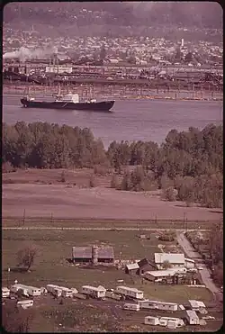 In 2005, Teevin Terminal, a barge terminal, opened in Rainier, directly across the Columbia from the Port of Longview in Washington.[10] The Oregon Transportation Commission awarded Teevin Bros. a grant of more than $2 million in 2012 to build a "T-pier,"[11] helping Teevin Terminal become "the largest shipper on the Portland & Western line between Eugene and Astoria," according to owner Shawn Teevin.[12]