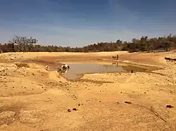A bouli is a small-scale artificial pond dug "where there is convergence of runoff" at the midpoint or bottom of a slope. This water tends to last for two[41] or even three months into the dry period after the monsoon.[42][43] In addition to supplying additional water for livestock and vegetable gardens the bouli "can recreate an ecosystem favourable to the life of the fauna and the local flora, boosting recharge of water tables during droughts and allowing vegetation to grow even during the dry period."[44] Bouli may be the most poorly studied of the rainwater harvesting techniques appropriate for the Sahel, as there are relatively few studies about the mechanics and benefits of this system.[44]