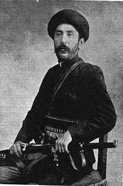 He led the Association of Mojaheds of Qazvin which was one of the many associations created after the constitutional revolution,[5] and maintained a small military force of around 100-300 soldiers in Qazvin. During the Incident of Toopkhane Square when the annulment of the parliament was a serious threat, this force entered Tehran which, along with the forces from Saveh, made the Shah temporarily retreat from his positions and swear fealty to the constitution, which made the forced return to Qazvin.[6][7]