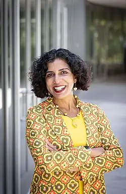 She is an External Professor at both the Santa Fe Institute and the Complexity Science Hub Vienna. She was a Kavli Fellow of the National Academy of Sciences several times and previously served on the World Economic Forum Global Agenda Council of Complex Systems.[12] She was made an inaugural member of the Global Young Academy in 2010.[13] In 2015, D'Souza was appointed the 2nd President of the Network Science Society, and served in this role until 2018. In 2019, she was awarded the Network Science Society's inaugural Euler Award "for her influential contribution to the discovery and study of explosive percolation and the insights it provided to explosive synchronization and network optimization".[14]
