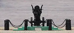 The Chinese cannon, mounted on a dragon and flanked with minor cannons, was brought from Nanking in 1842 after the First Opium War. An inscription on a marble plaque reads "The peace dictated to the Emperor of China under the walls of Nanking by the military force of England and of India".[12]