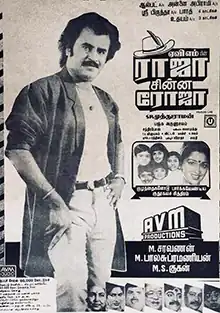 - ^ "'ஏவி.எம்'மின் 'ராஜா சின்ன ரோஜா' கார்ட்டூன்களுடன் ரஜினி நடித்தார்!- 80 ஆயிரம் படங்களை வரைந்து உருவாக்கிய காட்சி!". Maalai Malar (in Tamil). 11 December 2012. Archived from the original on 31 October 2013. Retrieved 2 December 2018.