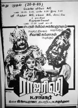 - ^ "சிவாஜி நடிக்கும் ராஜரிஷி". Anna (in Tamil). 1 September 1984. p. 3. Retrieved 24 June 2025 – via Endangered Archives Programme.