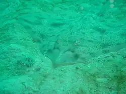 This skate migrates towards the coastal shallows during the warm season and towards deep waters in winter.[2][3] They spend most of their time lying flat on the sand, where they are well camouflaged.[3]