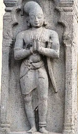 Thirumangai Alvar is believed to have built the tall flag post outside the temple with the help of cotton bales. He also is believed to have sung praises about the presiding deity, but the songs were lost with time. The other Alvars who are believed to have visited the temple at various periods were seemingly lost in memory under the beauty of the presiding deity and were at loss of words.[5] Sri Purandara dasaru, a Kannada Hari dasa, known as Pithamaha of Carnatic music had visited this place and glorified the God by composing a Kannada song " Kande Mannaru Krisha na" and "Mannaru Krishnanege Mangala". He is from Vijaya nagara empire. Even Sri Vijaya Dasaru also has composed song on this God.