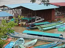 The town of Sibu can be assessed by oceangoing vessels for 80 miles (130 km), while an additional 100 miles (160 km) of the river can be assessed by shallow-draft craft. The remaining parts of the river, leading into the Sarawak interior, can only be assessed by small canoes.[5] Speedboats and longboats are the major form of transport between Kapit and Belaga. Transportation above Belaga to the Balui River requires longboats.[18] The Rajang River is also used for transporting logs.[18] During the monsoon season, some areas of the interior are accessible only by river. Meanwhile, in the towns downriver, market traders are often affected by floods.[8][note 19]