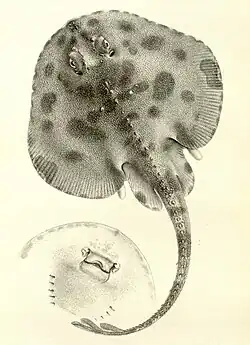 | Illustration of a young female Raja fyllae by Lütken, 1887 | |