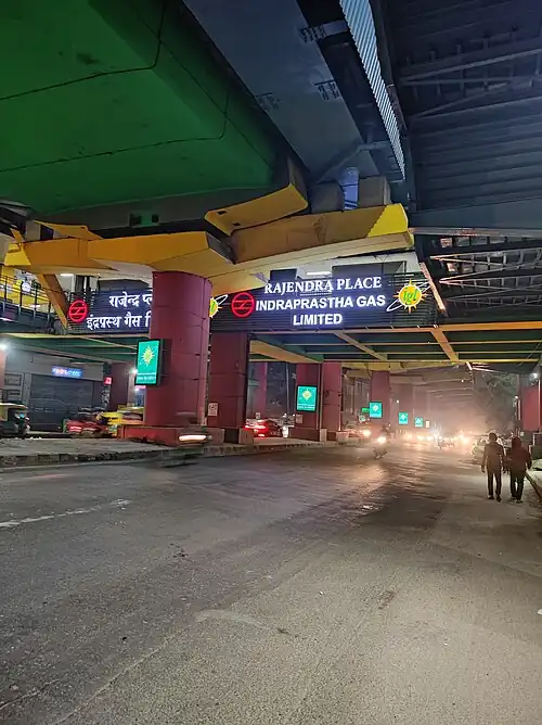 The Rajendra Place metro station is located on the Blue Line of the Delhi Metro.[1]