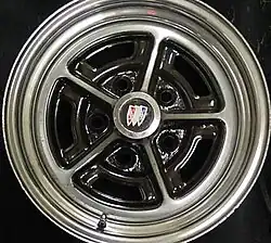 A Rallye rim (or Rally wheel) is a term used in automotive design for optional race car inspired wheels.[1] These wheels would have the appearance of the strong and lightweight wheels of a race car. Although less commonly used today the rallye rim was a popular option available in the muscle car era.