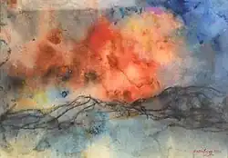 His early work obscured the natural forms that inspired them making critics see them as tending toward pure abstraction. In the early 1950s he made a transition to a more clearly figurative expression.[45][47] These late works were said to give off an air of mystery.[44] Writing of a solo show held at the Landry Gallery in October 1960, Stuart Preston of the New York Times said, "The essence of mystery and magic is exactly what distinguishes Ralph Rosenborg's meditative semi-abstract landscape water-colors... These are rapturous little acts of visual and manual concentration at first sight inscrutable and then revealing themselves to be precise and allusive.[49] Writing about the same show, Bennett Schiff, critic for the New York Post, said "A mystical intensity and a beauty which burns in ruby and sapphire colors are in these fine paintings."[55]