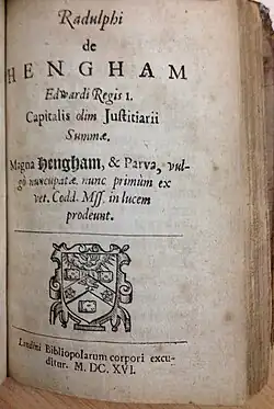 - ^ Paul Brand (January 2008) [2004]. "Hengham, Ralph (b. in or before 1235, d. 1311)". Oxford Dictionary of National Biography. Oxford Dictionary of National Biography (online ed.). Oxford University Press. doi:10.1093/ref:odnb/12924. Retrieved 8 September 2008. (Subscription, Wikipedia Library access or UK public library membership required.).