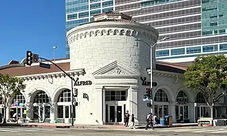 Ralphs Grocery Store is a historic building in the Westwood Village section of Westwood, Los Angeles, California. Built in 1929 as a Ralphs Grocery Store, it was one of the original six buildings in the Westwood Village development.[2] The building was noted for its cylindrical rotunda capped by a low saucer dome, with a pediment over the entrance and arcaded wings extending north and east. It was photographed by Ansel Adams in 1940, declared a Historic-Cultural Monument in 1988, and listed on the National Register of Historic Places in 1992.