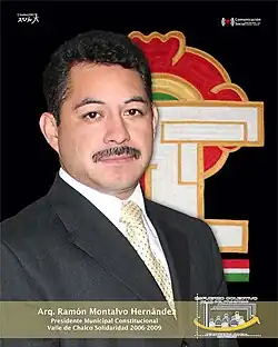 Ramón Montalvo Hernández (born 29 July 1974) is a Mexican politician affiliated with the PRD. From September 1, 2012, to August 31, 2015, he served as Deputy of the LXII Legislature of the Mexican Congress representing the State of Mexico.[1] He also served as the Municipal President (Mayor) of Valle de Chalco from 2006 to 2009 and again from 2016 to 2019.