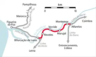 Ramal de Alfarelos is a railway branch in Portugal, which connects the Western Line (at Bifurcação de Lares) to the Northern Line (at Alfarelos), offering a connection between Figueira da Foz and Coimbra.[1]