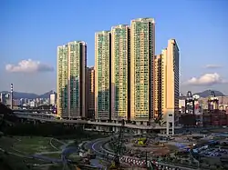 However, the development turned out to be a slab block of three hotels at the front and five additional 40-storey residential blocks at the back.[2] The residential complex consists of 800 units of two or three bedroom flats with Gross Floor Areas from approx. 680 to 950 square feet (63 to 88 square meter) (translating into net usable floor area of between 540 and 760 square feet (50 and 71 square meter)).