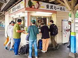 - Ramen Street – an area in the underground mall of the Tokyo Station railway station's Yaesu side that has eight restaurants specializing in ramen dishes.[15][16][17][18]