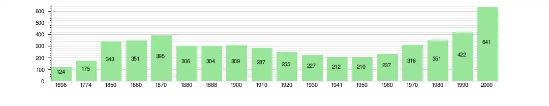 As of 2000, there were 245 private households in the municipality, and an average of 2.6 persons per household.[8] There were 40 households that consist of only one person and 22 households with five or more people. Out of a total of 246 households that answered this question, 16.3% were households made up of just one person. Of the rest of the households, there are 104 married couples without children, 87 married couples with children There were 11 single parents with a child or children. There were 3 households that were made up unrelated people and 1 household that was made some sort of institution or another collective housing.[9]
