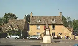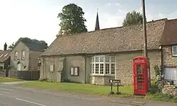 Ramsden is a linear village, lying east–west along an old road that intersects Akeman Street. Wychwood Lodge in the High Street was built late in the 16th century and had been extended by the middle of the 17th century. It is built of coursed Cotswold stone rubble with ashlar dressings and has a Stonesfield slate roof. The front doorway and the main ground floor fireplace are Tudor. The house is a Grade II* listed building.[9] Trades in Ramsden included a forge and attached cottage that were built in the middle of the 18th century. The forge is no longer trading, and has been converted into part of the attached cottage.[10]