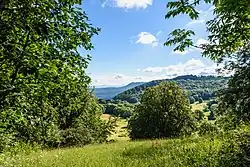 The Randecker Maar is a maar – a volcanic crater about 1.2 kilometres (0.75 miles) wide. It is in the Swabian Jura mountains, in the municipality Bissingen an der Teck near Stuttgart and was formed around 17 million years ago. A lake formed in the crater and its bed is now a layer of the early Miocene in which many fossils have been found.[1] Nowadays, the crater is drained by the Zipfelbach brook and so there is no longer a lake.