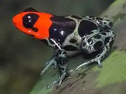 Ranitomeya benedicta, sometimes called the blessed poison frog,[1] is a species of poison dart frogs found in the lowland rainforest of the Pampas del Sacramento in southern Loreto and eastern San Martín Region, northeastern Peru.[3][1][4] Before 2008, the species was considered a subspecies of Ranitomeya fantastica.[2] The IUCN considers the species vulnerable because of limited habitat range, habitat loss, and collection for the pet trade.[1][5]