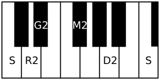 It is an asymmetric pentatonic scale, which is pleasing and has been more popular in last 50 years.[1] It figures in ragamalikas, slokams, vrittams and light popular songs, as it is a pleasing scale.[2]
