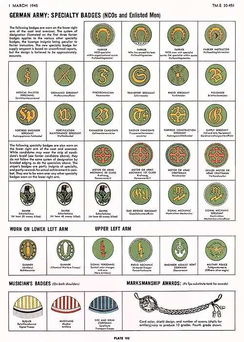 - ^ While the contemporary Department of War states that sergeant major was equivalent to Stabsfeldwebel, SM did not exist as title of rank or grade at that time.[16]
