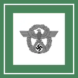 In addition to collar and shoulder insignia, Ordnungspolizei also wore the wreathed police eagle on the upper left sleeve. The collar patch and shoulderboards were backed, and the sleeve eagle (below the rank of Leutnant) embroidered, in truppenfarbe, a colour-code which indicated the branch of police: green for Schutzpolizei (protection police) and police general officers, wine-red for Gemeindepolizei (municipal protection police), orange for rural Gendarmerie, carmine-red for fire brigades, gold for maritime police, and light grey for administrative police.[2]