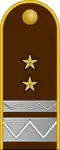 | Vezérezredes | Altábornagy | Vezérőrnagy | Ezredes | Alezredes | Őrnagy | Százados | Főhadnagy | Hadnagy | Alhadnagy | |||||||||||||||