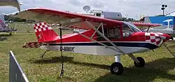The Rans S-6 Coyote II is an American single-engined, tractor configuration, two-seat, high-wing monoplane designed by Randy Schlitter and manufactured by Rans Inc. The Coyote is available in kit form for amateur construction or as a completed light-sport aircraft.[1][2][3][4][5][6][7][8]