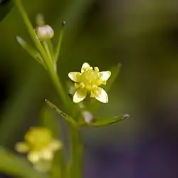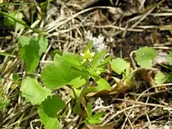Ranunculus abortivus is a species of flowering plant in the buttercup family, Ranunculaceae. Its common names include littleleaf buttercup,[1] small-flower crowfoot,[2] small-flowered buttercup,[3] and kidneyleaf buttercup.[4] It is widespread across much of North America, found in all ten Canadian provinces as well as Yukon and the Northwest Territories, and most of the United States, except Hawaii, Oregon, California, and parts of the Southwest.[1][5]